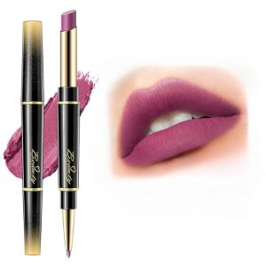 QIC Dual-Ended Lipstick & Liner Pen in Rose Red – Long-Wearing Makeup for Everyday Glam – 14 Shade Collection (10#rose powder)
