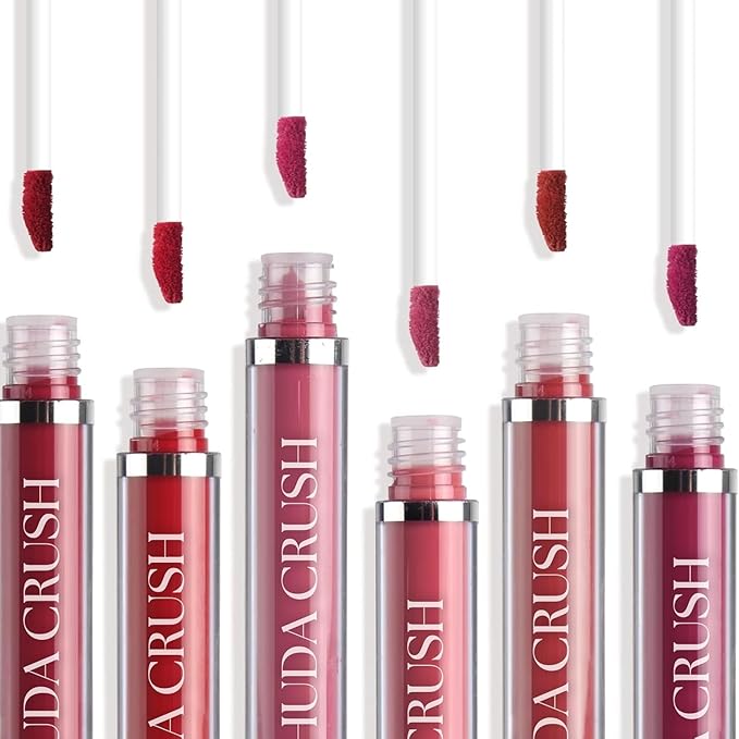 HUDACRUS.H HUDA CRUSH 6-Piece Liquid Matte Nude Lipstick Set – Velvet Waterproof Mini Lipsticks for Women, Non-Stick Formula